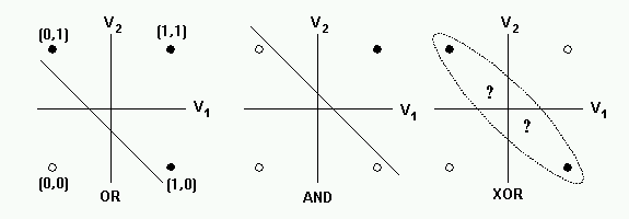 - AND와 OR과 같은 선형 데이터는 분류 가능하지만, XOR과 같은 형태의 비선형 데이터는 분류가 불가능하다