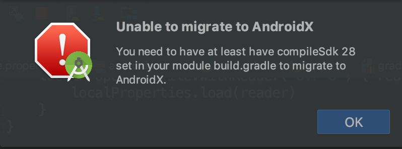- Solution : **build.gradle** 에서 **compileSdkVersion, targetSdkVersion** 을 **28**로 수정